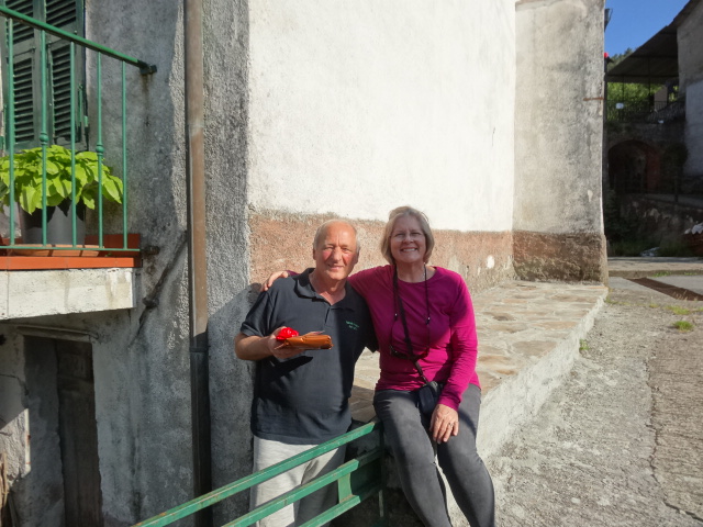 Walking down the road toward Debeduse and Villa Grossa, we see a plaque in honor of Daniele (Dani) Bucchioni (1917-2013). He died on June 27, 2013, at age 94. I am surprised to learn that Borseda was an active Partisan stronghold involved in both the action in the municipality of Calice and in the region of Liguria. Of course, this would have been the perfect place to hide, thick with brush and trees and varied in terrain. Partisans from Calice (the municipality that includes Borseda and other villages nearby) are credited with liberating Aulla, a village to the east, and with providing an escape route and guides for Allied prisoners traveling across the Magra River and into the mountains further south. The Brigade operated in Borseda from October 1943 to May of 1945.